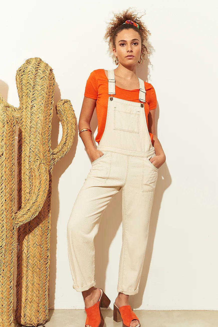 La salopette Gianna offre un outfit versatile e chic, ideale per feste, eventi speciali e look alla moda. Realizzata al 100% in cotone, questa salopette offre un comfort ottimale pur rimanendo leggera e traspirante. Lo stile salopette è perfetto per il clima caldo o gli eventi estivi, e il suo colore ecru aggiunge un tocco di classe e raffinatezza.