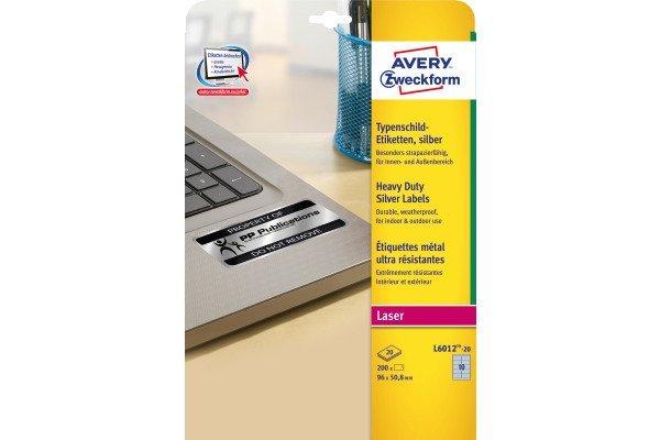 Avery Zweckform, Etichetta per cartellini e targhette 96 x 50.8 mm Pellicola in poliestere Argento 200 pz. A ten
