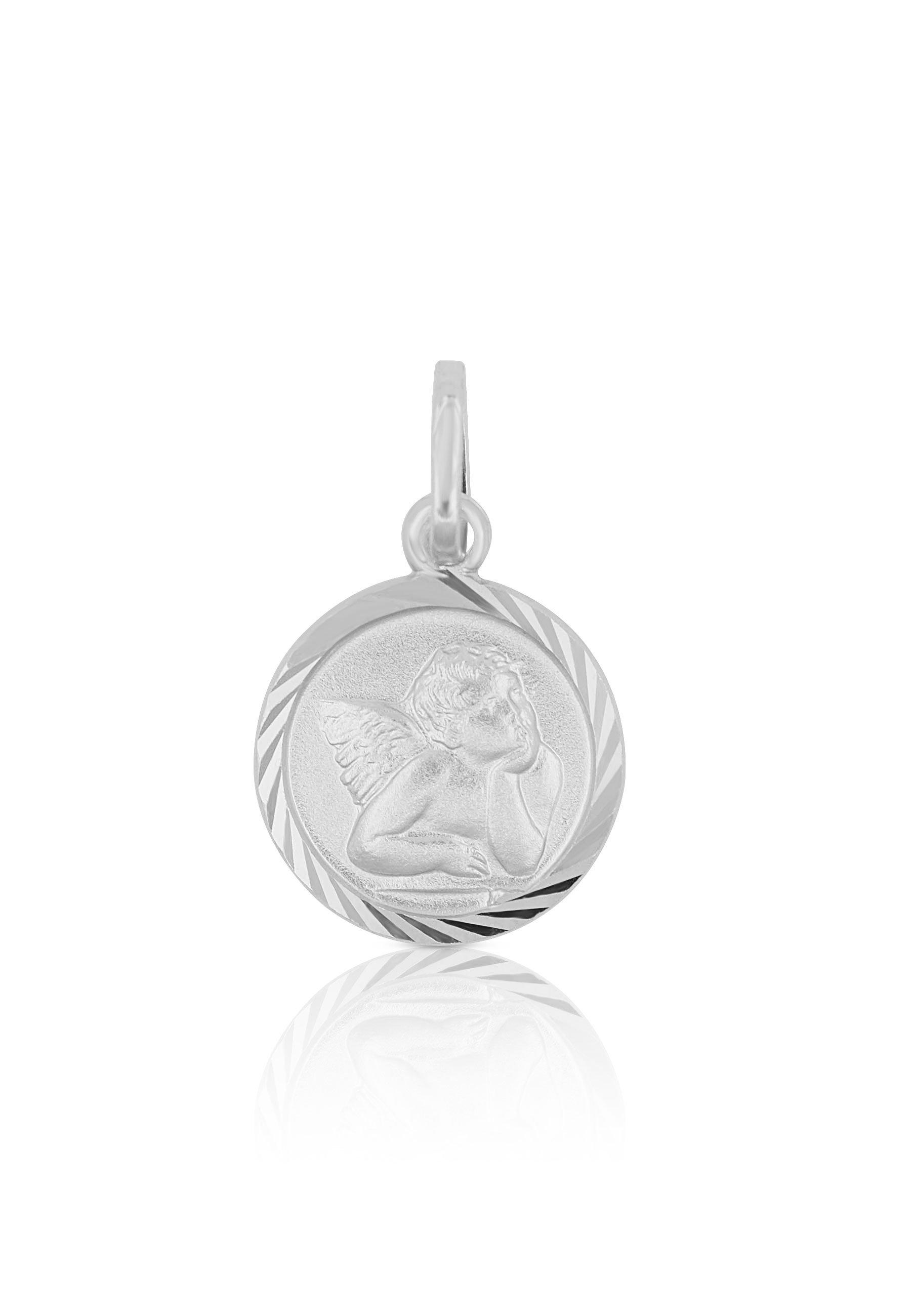 MUAU Schmuck Anhänger Medaille Engel Weissgold 750, 10mm