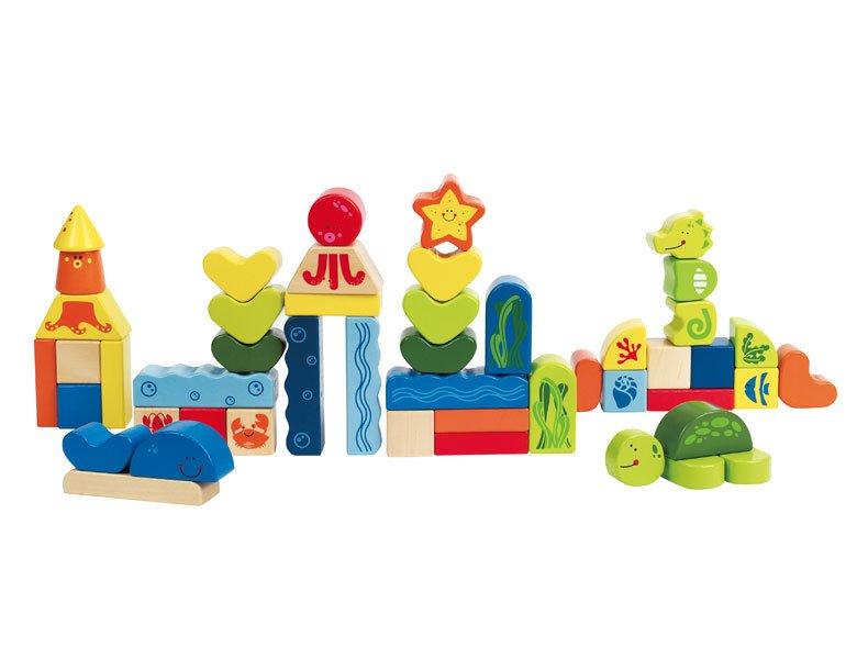 Mit diesen Holzbausteinen können Sie gemeinsam mit Ihrem Kind eine einzigartige Unterwasserwelt erschaffen! Die 46 verschiedenen Bausteine in leuchtenden Farben bieten endlose Möglichkeiten, fantasievolle und kreative Bauwerke zu errichten. Diese Bauklötze sind aus hochwertigem Holz gefertigt und sicher für Kinder ab 2 Jahren. Sie fördern das Vorstellungsvermögen und die motorischen Fähigkeiten Ihres Kindes.