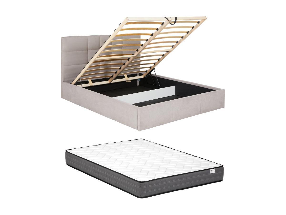 PASCAL MORABITO, Letto con contenitore 160 x200 cm Tessuto Beige + Materasso - ELIAVA