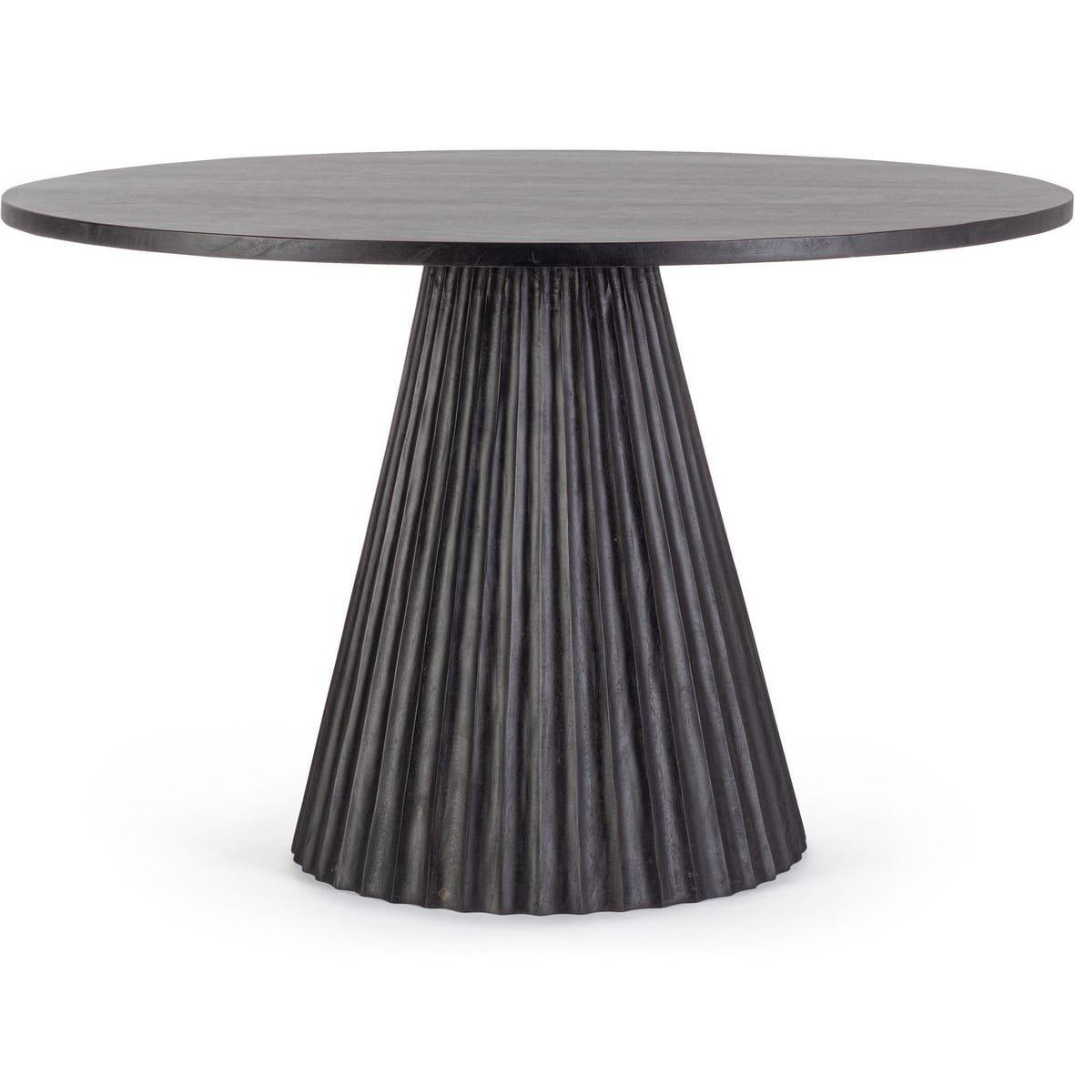 Tavolo in legno di mango, colore nero, Ø120 x 76hStruttura in legno di mangoFinitura in nitrocellulosa, base con scanalatureDa assemblare