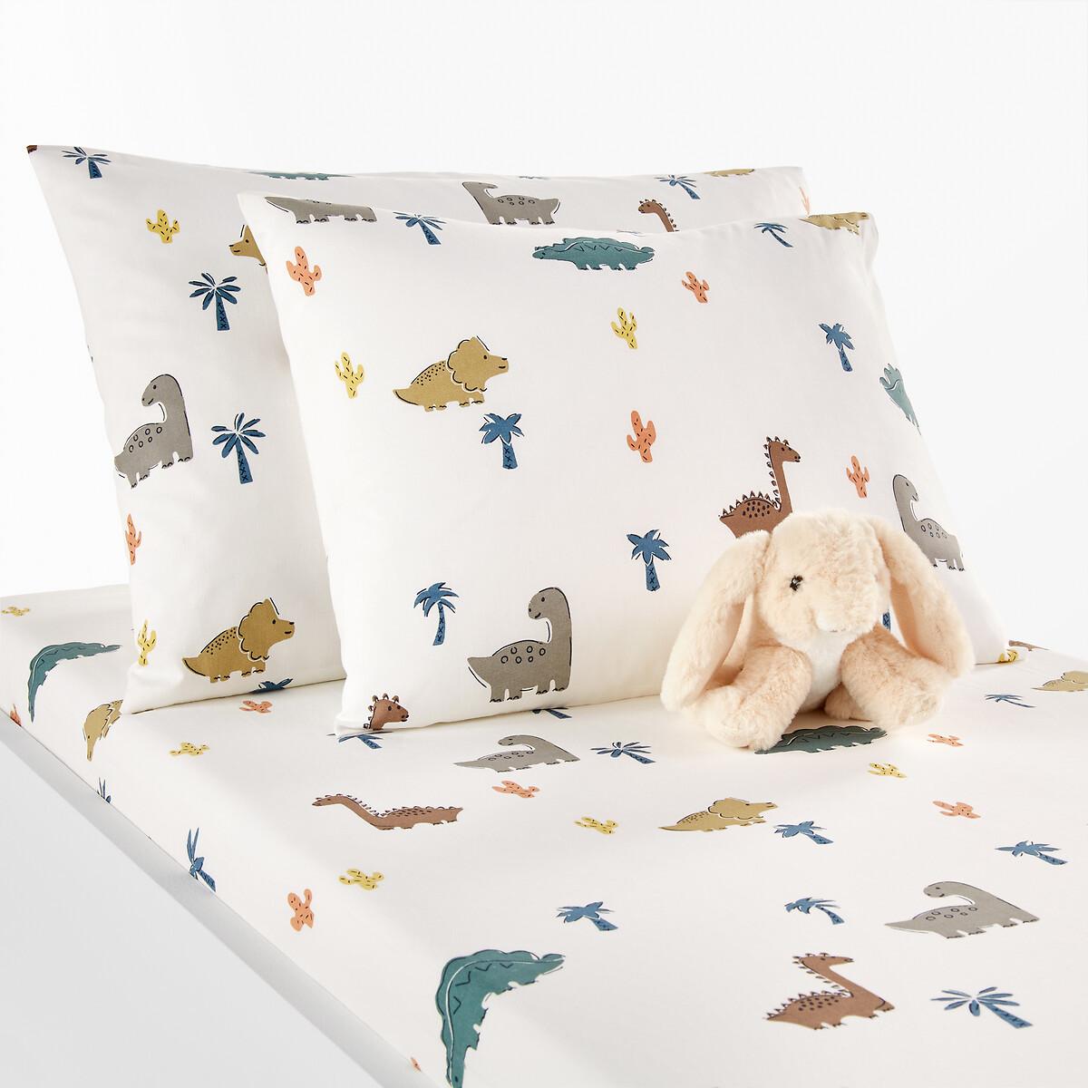 Il team di design di La Redoute Intérieurs ha viaggiato indietro nel tempo fino ai dinosauri per creare questa biancheria da letto. Questa federa presenta creature preistoriche in delicate tonalità pastello, aggiungendo un tocco di divertimento alla camera da letto di ogni bambino. Il design include vari dinosauri, palme e cactus, creando una scena vivace e coinvolgente.