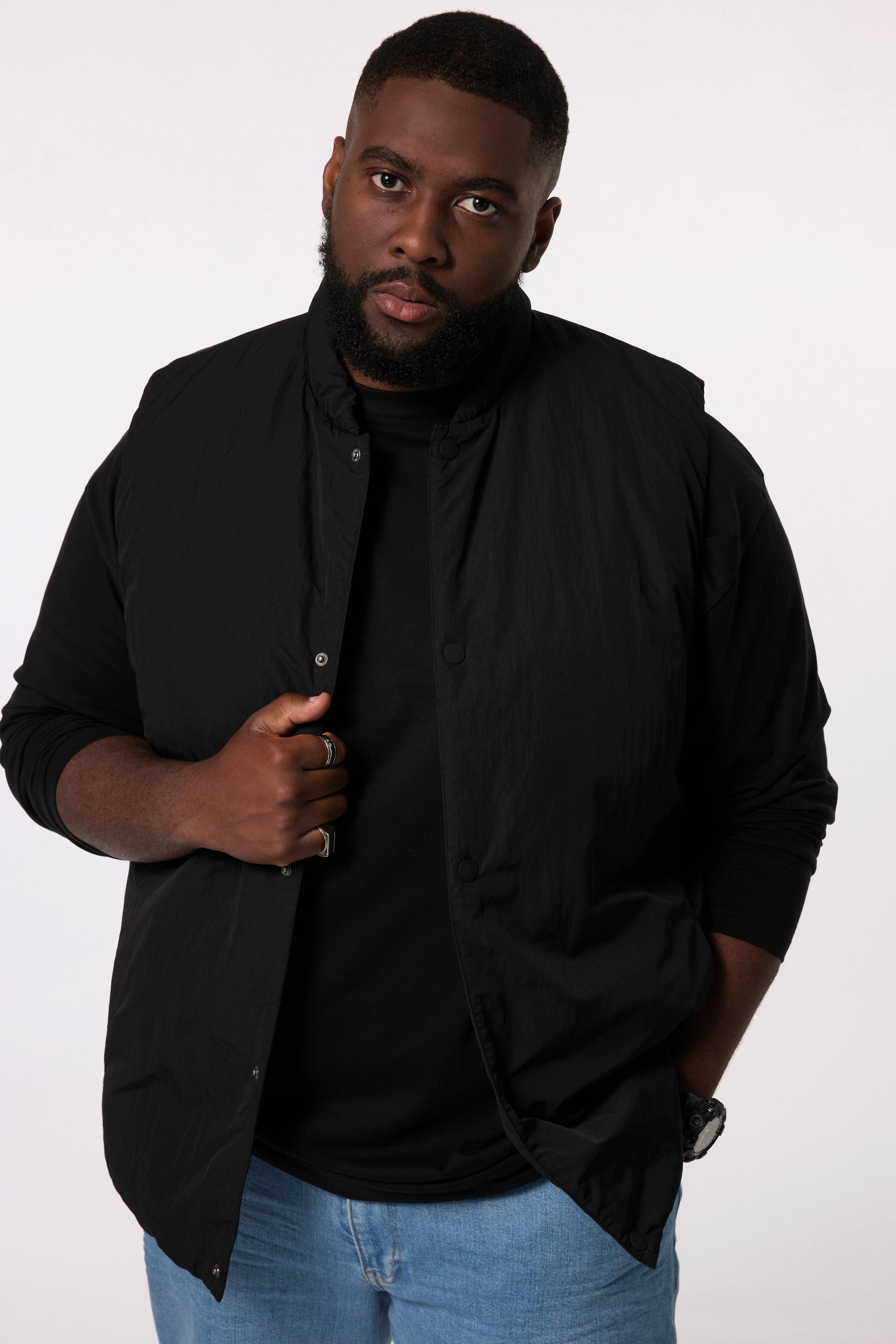Il gilet trapuntato Sthuge è realizzato in materiale caldo e imbottito e presenta un collo alto e bottoni automatici. Questo capo è prodotto con materiali riciclati, offrendo un'opzione di stratificazione sostenibile ed elegante.