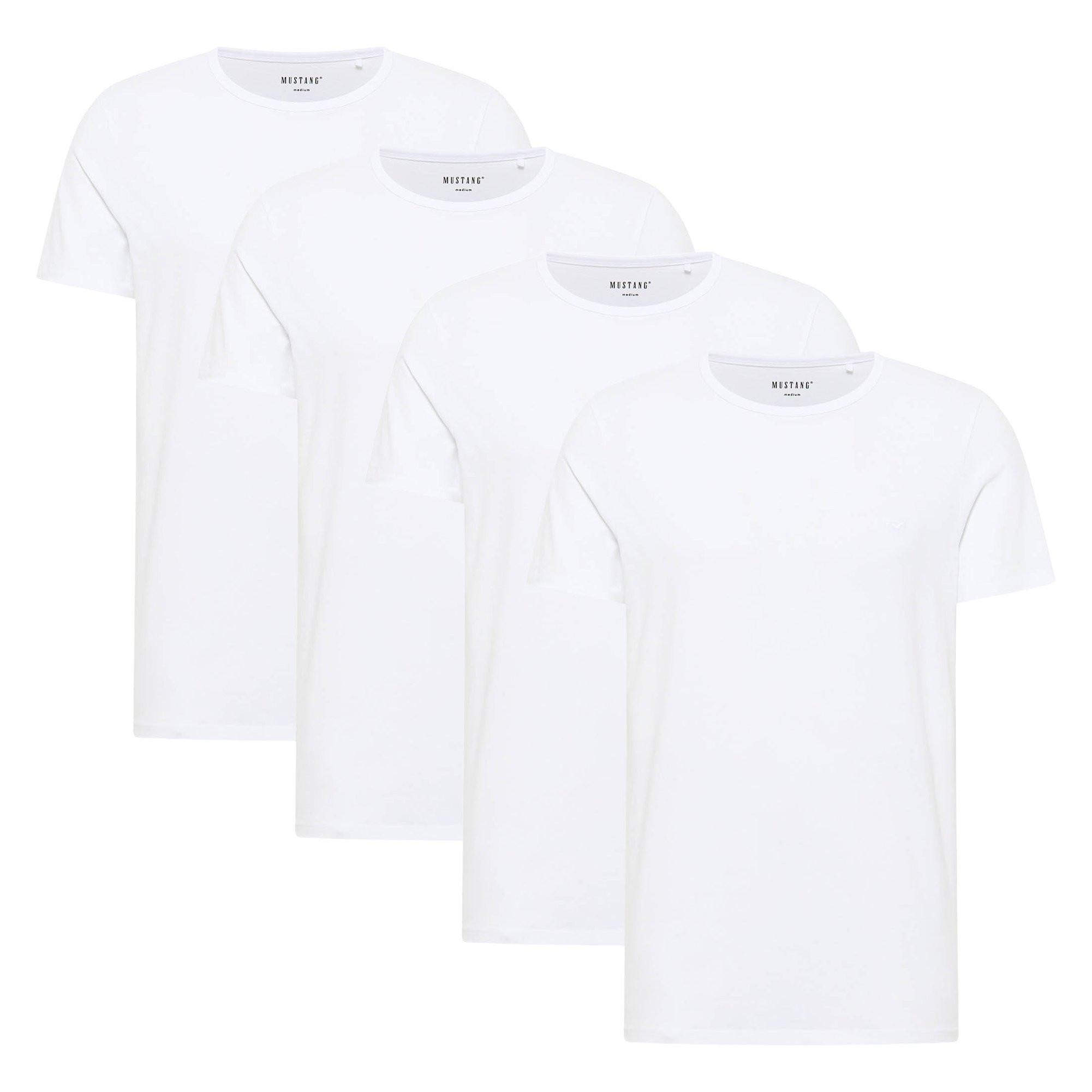 MUSTANG T-shirt basic uomo in confezione da quattro. Maglietta casual con girocollo e orlo dritto. Miscela di tessuto con cotone biologico sostenibile ed elasticità.