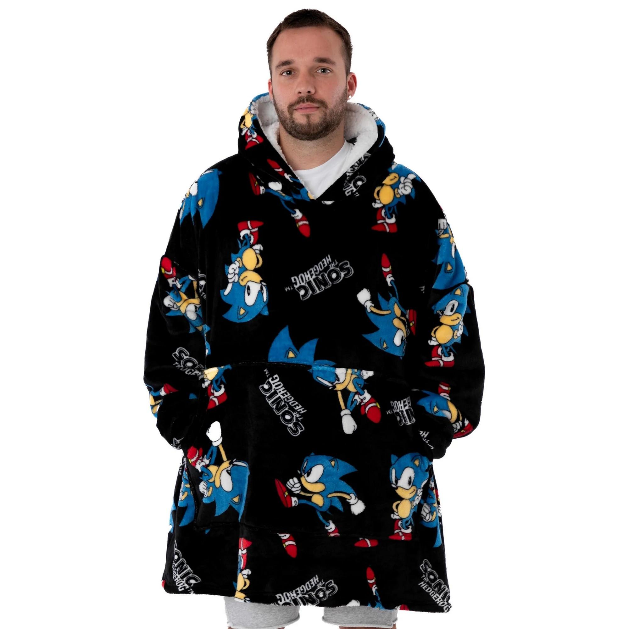Questa coperta con cappuccio presenta una giocosa stampa di Sonic The Hedgehog, offrendo comfort e un tocco di divertimento. È progettata per una vestibilità rilassata, rendendola ideale per il relax.