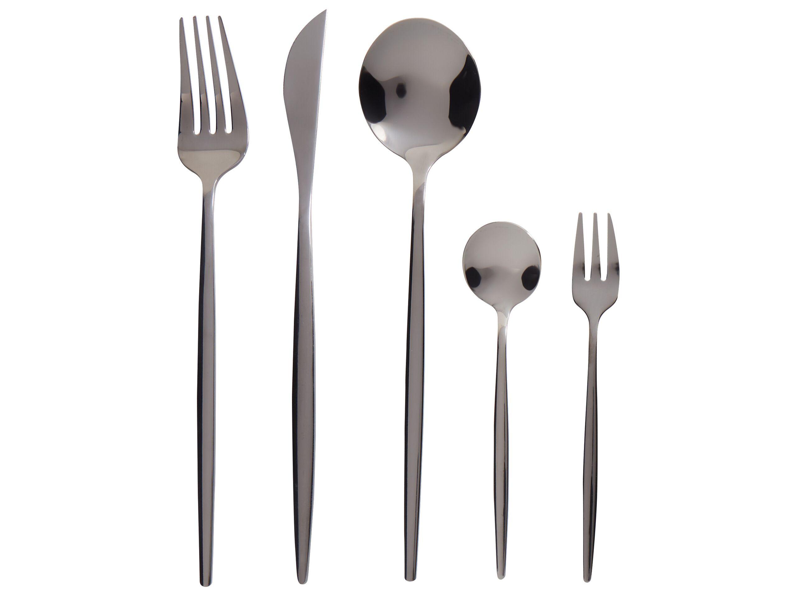 Set di posate per 6 persone. Dai un tocco di raffinatezza alla tua sala da pranzo con questo elegante set di posate. Ogni pezzo è realizzato in acciaio inossidabile di prima qualità, che offre una durata eccezionale e una lucentezza brillante. I manici sottili e allungati offrono un'estetica aggraziata e un equilibrio perfetto per le sale da pranzo contemporanee. Poiché comprende 5 pezzi diversi, tu puoi utilizzarlo in vari ambienti, dalle cene formali con dessert alle riunioni informali con gli amici.