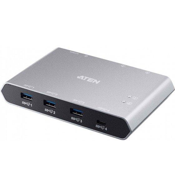 ATEN US3342 è un dispositivo di condivisione delle periferiche USB 3.2 Gen 2 a 4 porte che consente agli utenti di condividere i dati tra quattro dispositivi USB in due diversi laptop dotati di USB-C. L'US3342 è conforme USB 3.2 Gen 2, può quindi supporta