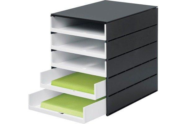 Styro val pro Box mit 5 Schubladen offen Gehäuse schwarz, Schubladen schwarz