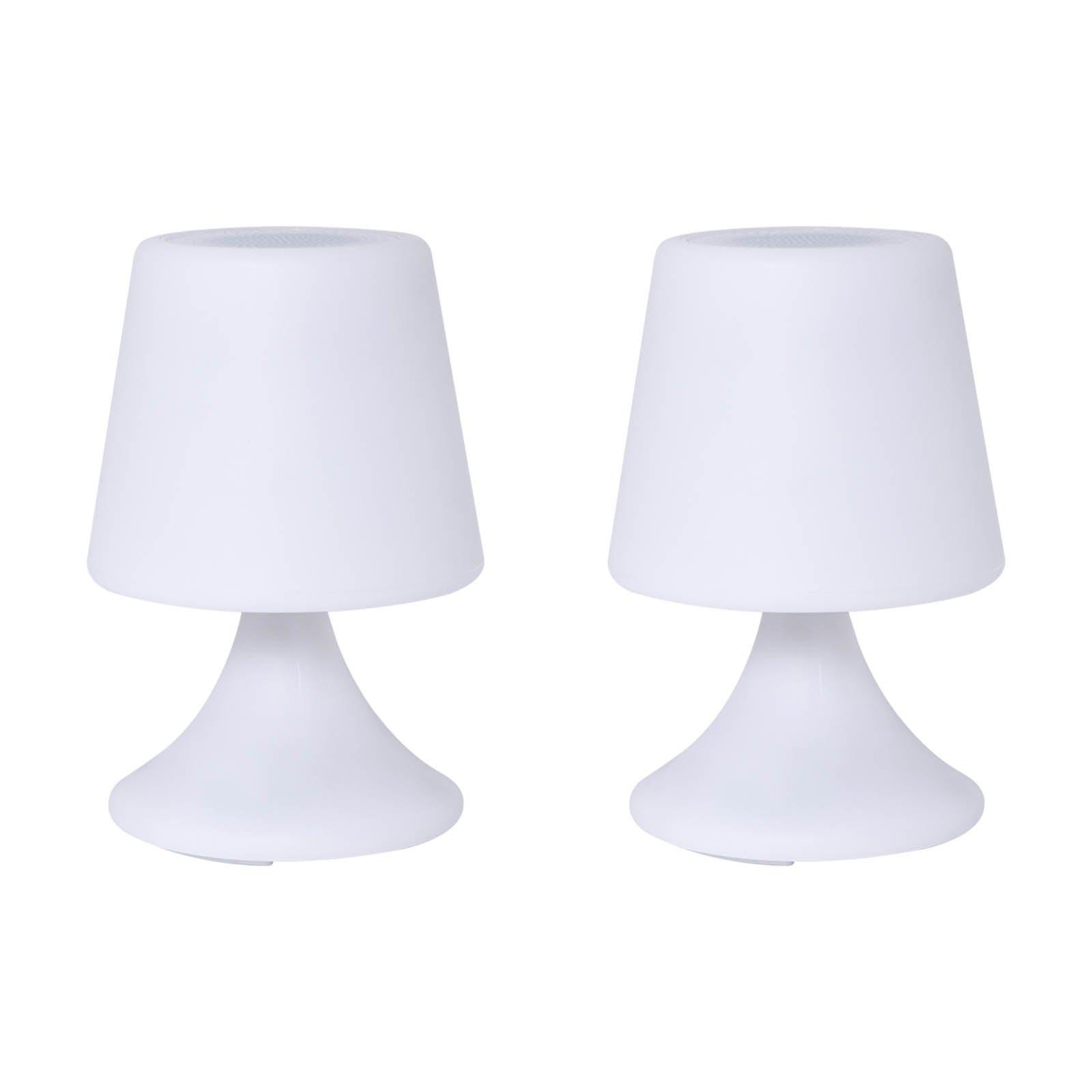 Lampade Bluetooth marchio Duo Colorblock. Set di due lampade interconnesse con altoparlanti Bluetooth integrati. Neon multicolor, puoi regolarle con 7 colori. Potenza del suono 15W. Telecomando incluso. Portata di 10 metri. Autonomia in uso fino a 8 ore.