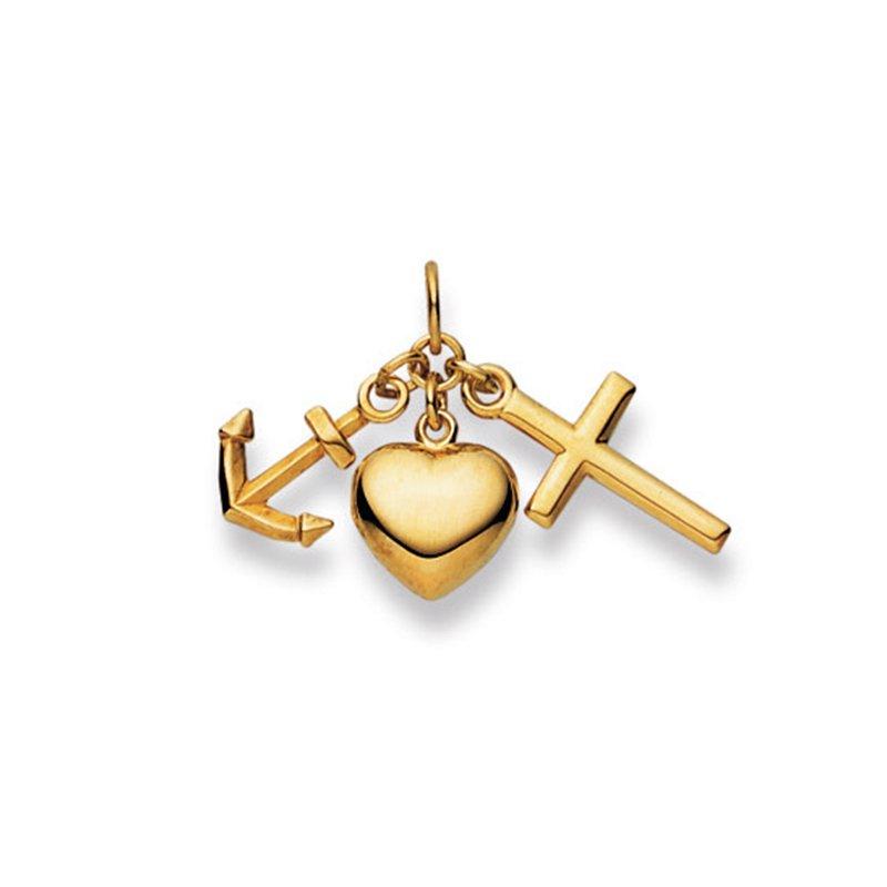 MUAU Schmuck, Anhänger Glaube-Liebe-Hoffnung Gelbgold 750, 18x28mm