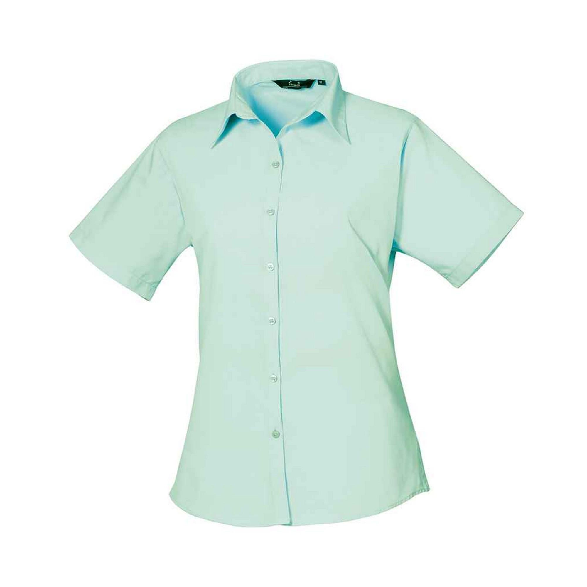 Questa camicetta a maniche corte offre un'aggiunta classica e versatile a qualsiasi guardaroba. Il suo design presenta una chiusura frontale con bottoni e un colletto tradizionale, rendendola adatta a varie occasioni.