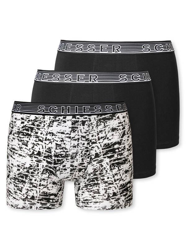 elastico in vita a righe tutti e tre i pantaloncini con scritta SCHIESSER a tutto tondo sulla fascia elastica in vita