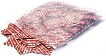 Preservativi di colore rosso vivo con aroma/sapore di fragola! Con lubrificante e serbatoio delicato per la pelle. Imballati singolarmente - confezionati in sacchetti da 100 pezzi.