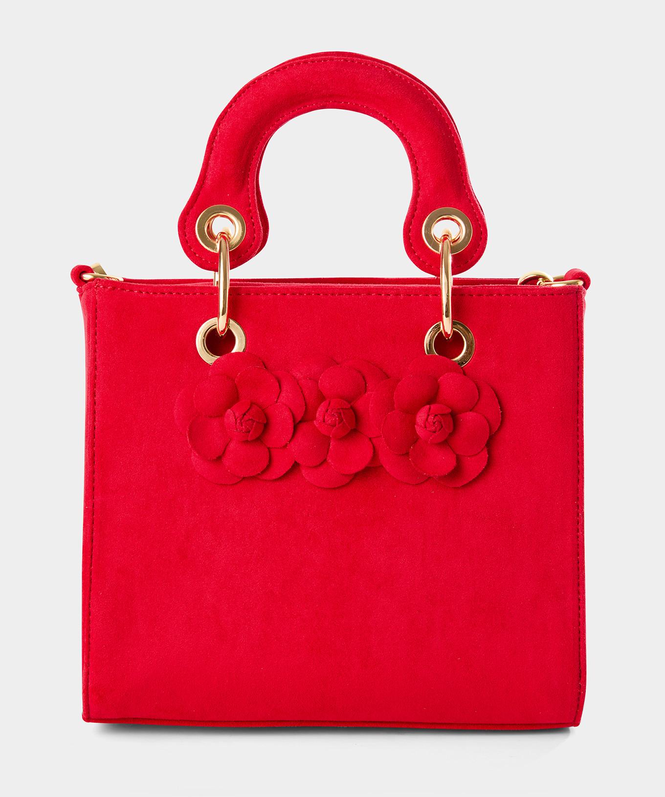 Con la goffratura floreale plastica questa borsa in microsuede è un vero classico, ideale per eventi serali.