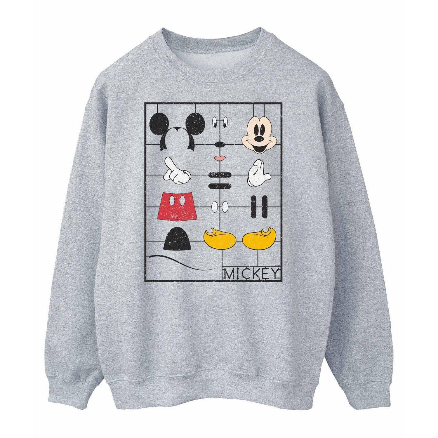 Questa felpa presenta una grafica decostruita unica di Topolino, che mostra vari elementi dell'iconico personaggio in un layout a griglia. Il design offre un'interpretazione giocosa e artistica di una figura classica, rendendola un'aggiunta distintiva a qualsiasi guardaroba casual.