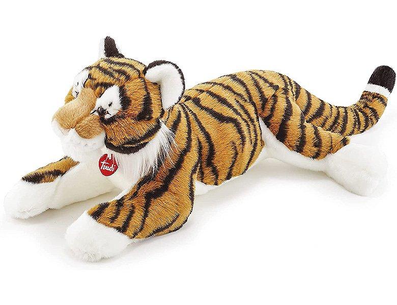 Der Plüsch-Tiger mit einer Gesamtlänge von 46 cm fasziniert durch sein detailgetreues Design mit orangefarbenem Fell und schwarzen Streifen. Er wurde in einer aktiven, katzenähnlichen Haltung gestaltet, die ihn besonders sympathisch macht. Der Plüsch ist maschinenwaschbar bei 30 Grad, alternativ kann er auch von Hand gereinigt werden.