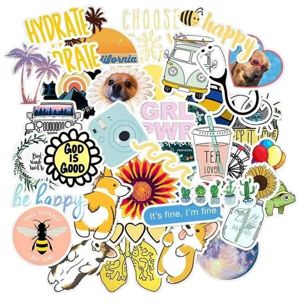 Decora i tuoi effetti personali con graziosi adesivi e diventeranno immediatamente più personali. Con questo pacchetto contenente 50 adesivi, puoi decorare qualsiasi cosa, dal tuo laptop e smartphone allo skateboard e al taccuino. Inoltre, sono resistenti all'acqua e non cadono se si bagnano un po'.