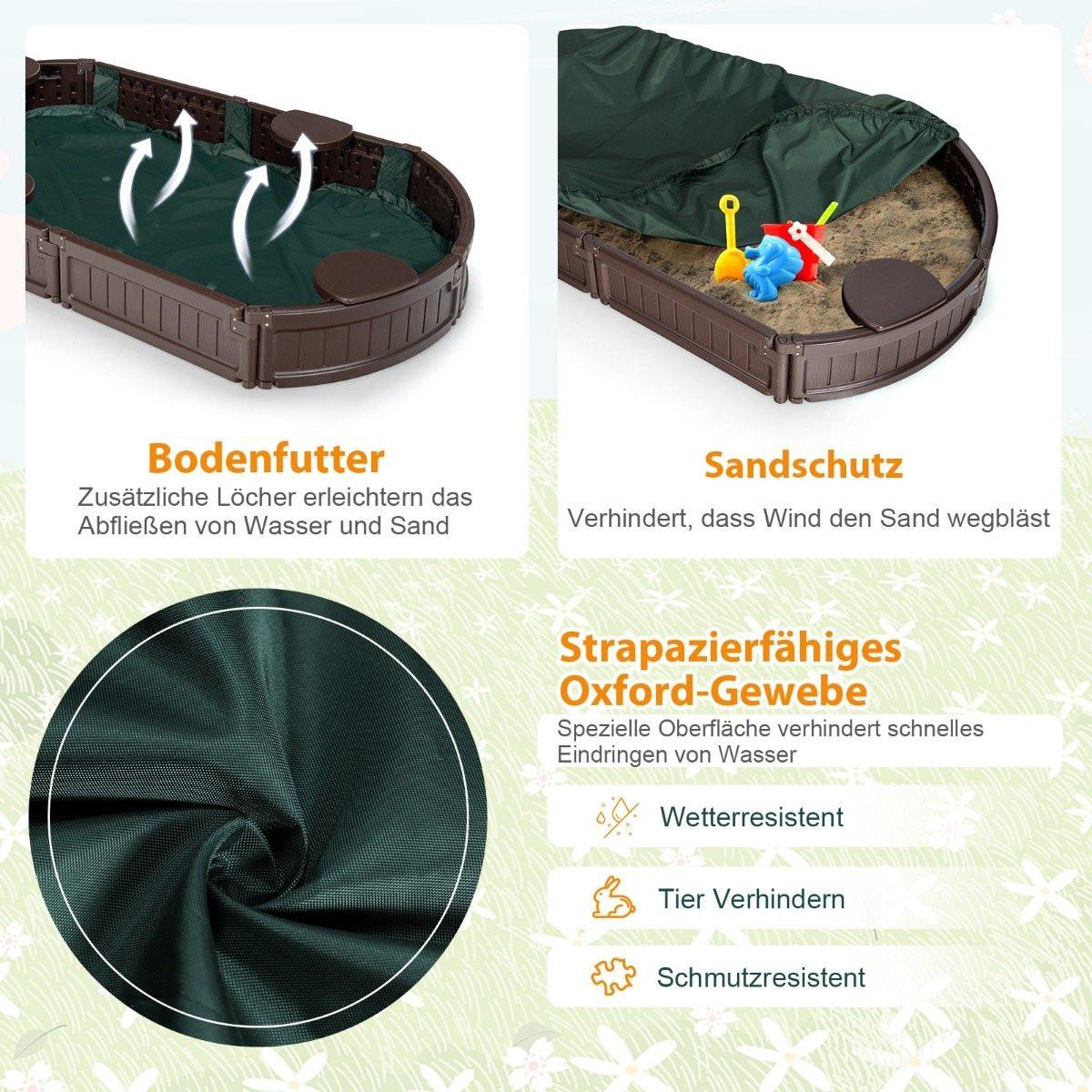 Una delle caratteristiche distintive della nostra sandbox è il suo design innovativo. A differenza dei modelli tradizionali, è dotato di un rivestimento anziché di una base solida, che consente un facile drenaggio e una profondità della sabbia regolabile. Questo design accurato garantisce che la sabbiera rimanga pulita e asciutta, fornendo un'area giochi igienica per i bambini. La copertura inclusa protegge ulteriormente la sabbiera da foglie e detriti, mantenendo un ambiente di gioco incontaminato.