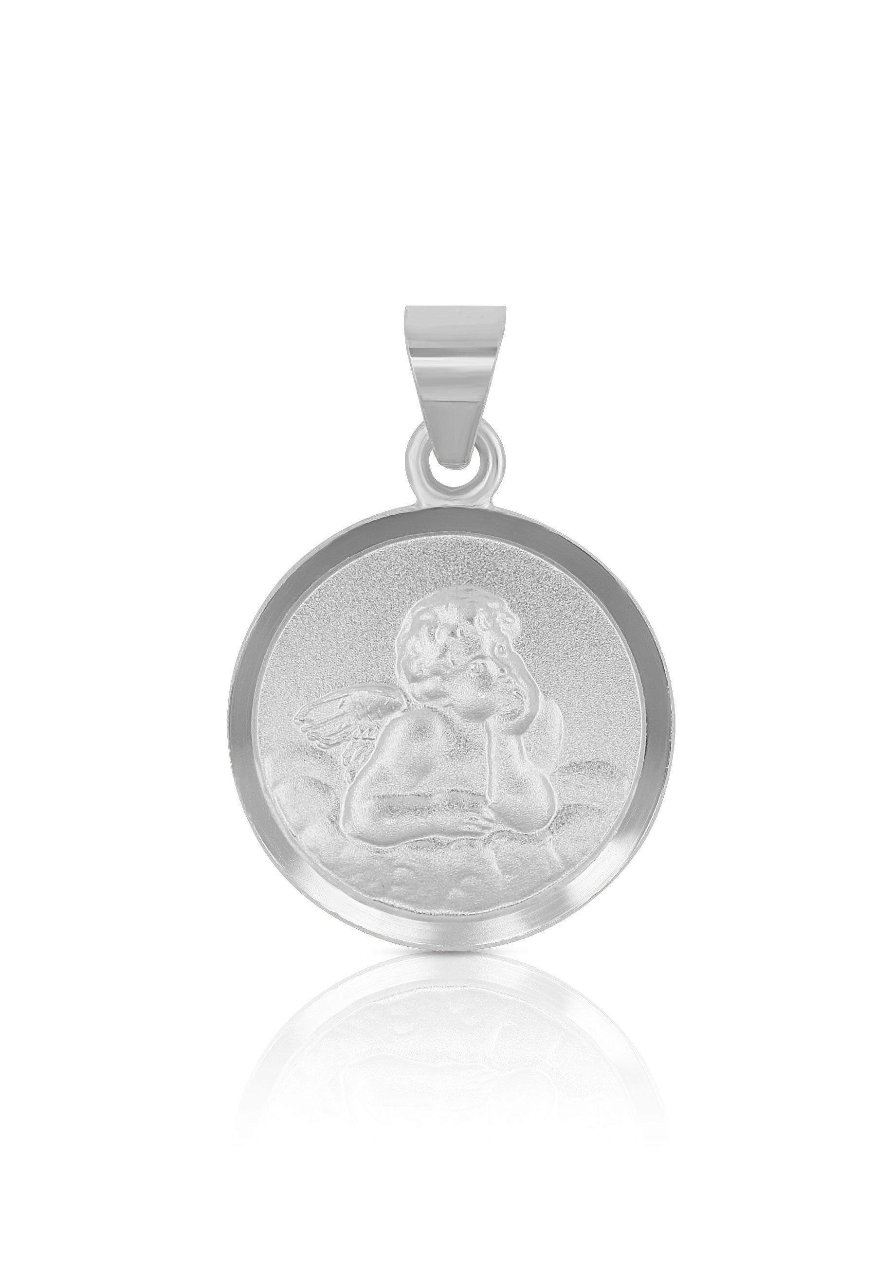 MUAU Schmuck Anhänger Medaille Engel Weissgold 750, 12mm