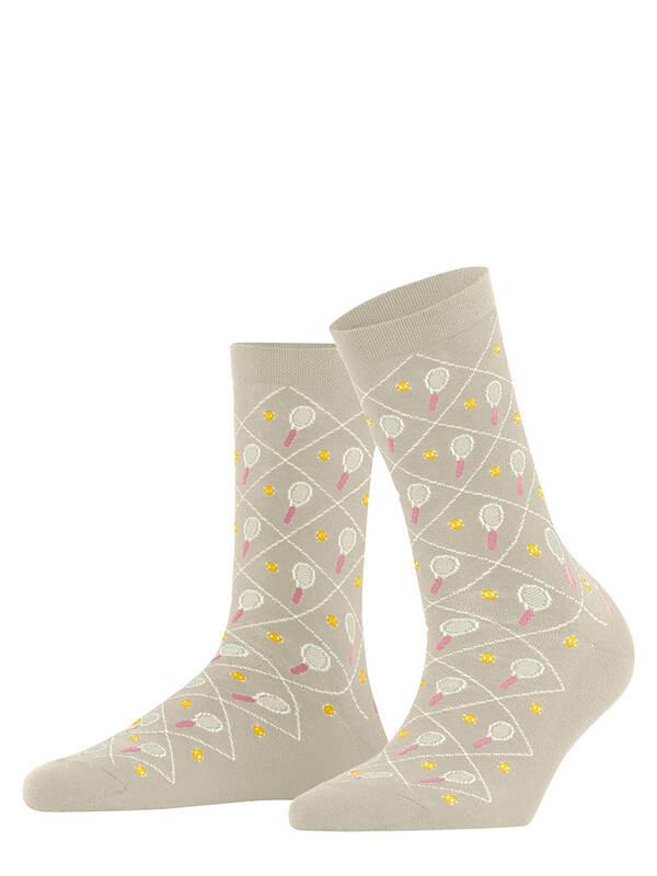 Questi calzini presentano un giocoso motivo a tema tennis club, rendendoli un accessorio distintivo. Il design include racchette e palline da tennis, disposte in un motivo geometrico sul tessuto. Un must-have per tutti gli amanti dello sport, questi calzini combinano il tipico motivo argyle del marchio con un polsino sportivo in piqué per uno stile elegante.