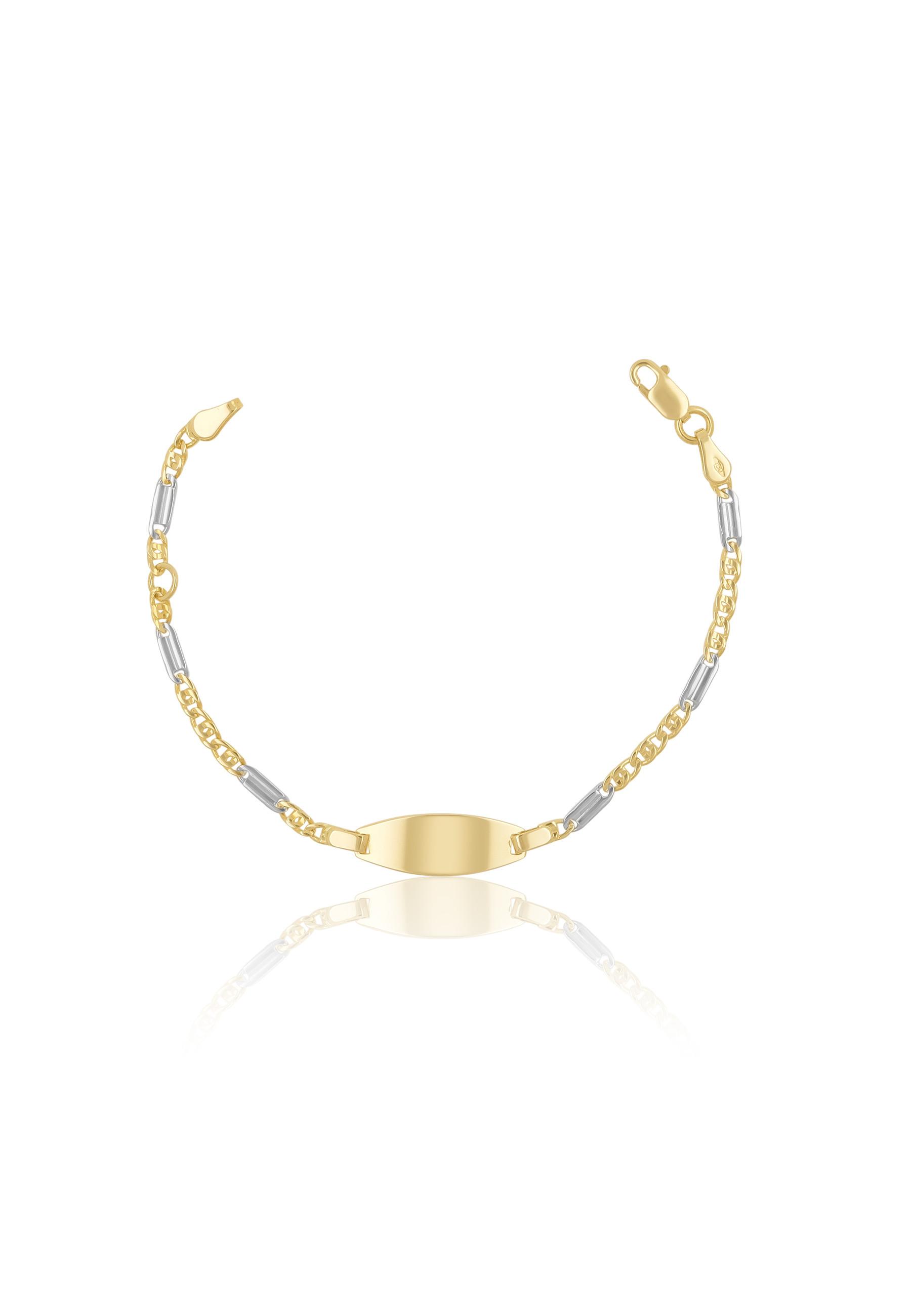 MUAU Schmuck, ID-Bracelet oval Fantasie Weiss-/Bicolor Gelbgoldgold 750, 2.3mm, 14cm