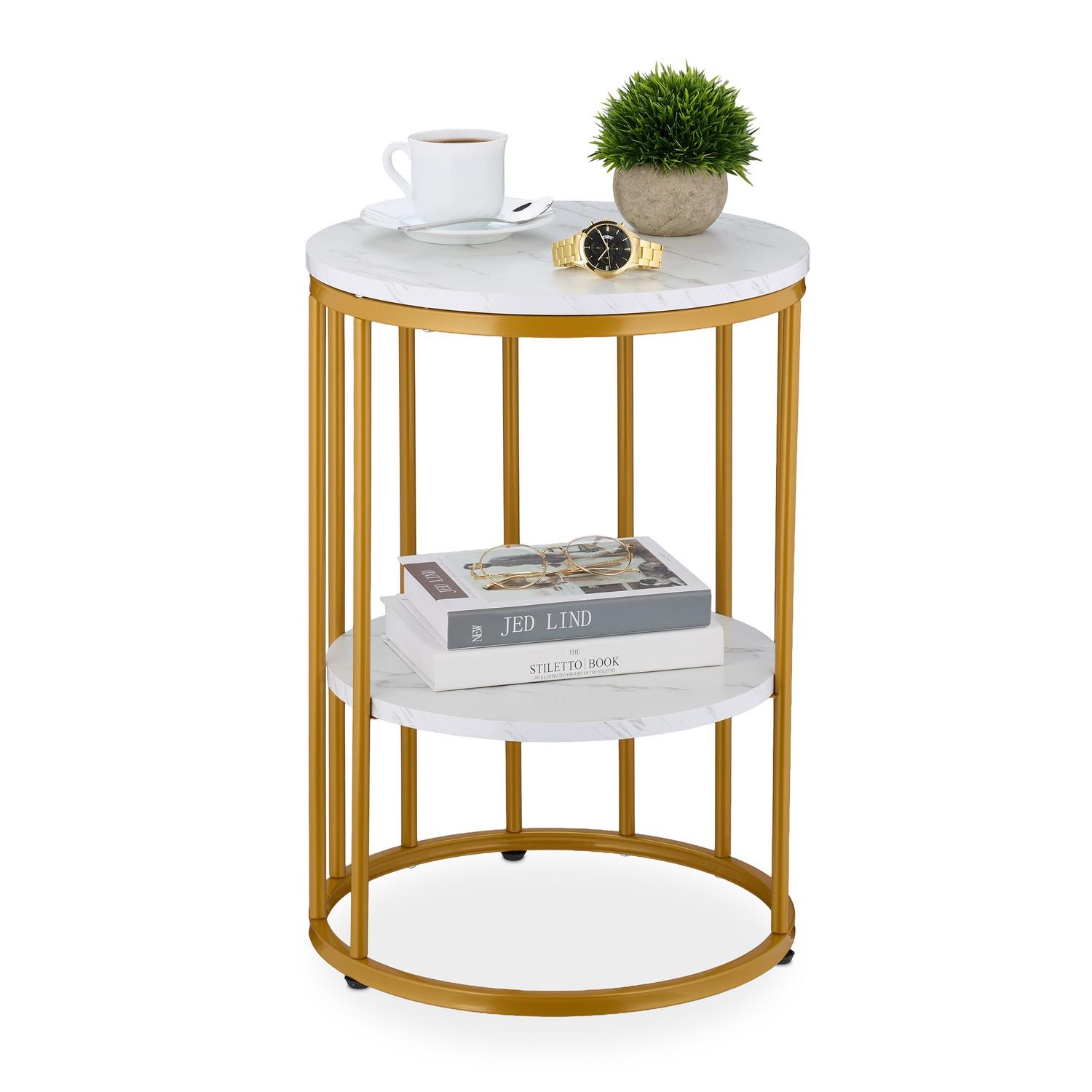 Questo tavolo rotondo effetto marmo offre funzionalità versatile e un design elegante, valorizzando l'arredamento di qualsiasi stanza. Perfetto come tavolino o comodino, offre ampio spazio per gli oggetti essenziali.