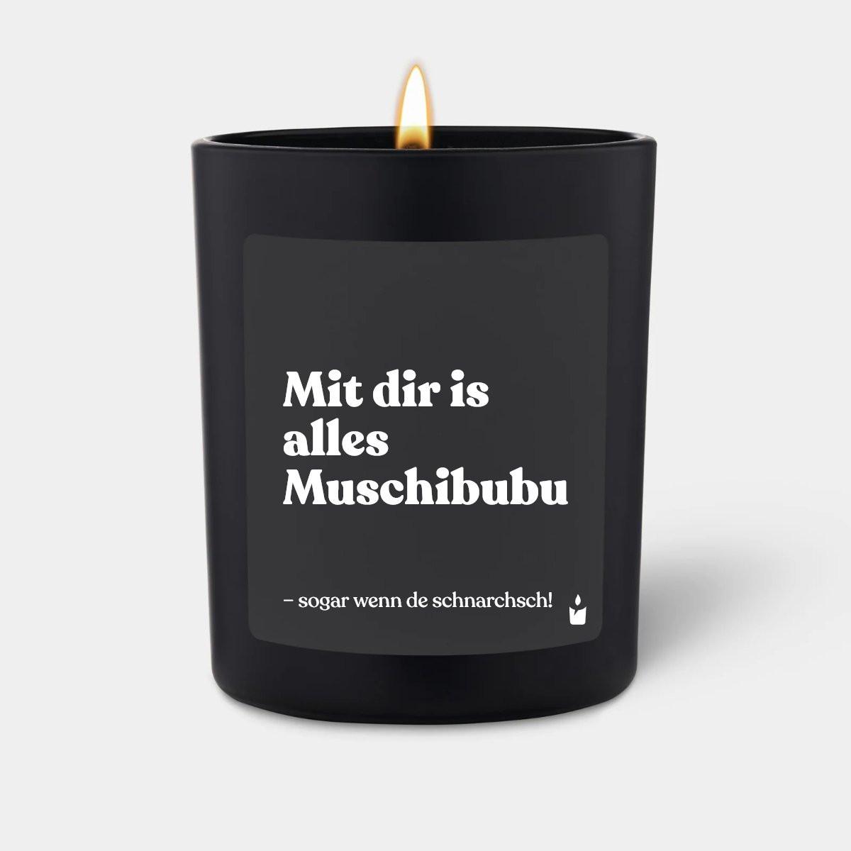 CandleHand Duftkerze Schwarz Woody Mit dir is alles Muschibubu, sogar wenn de schnarchsch!