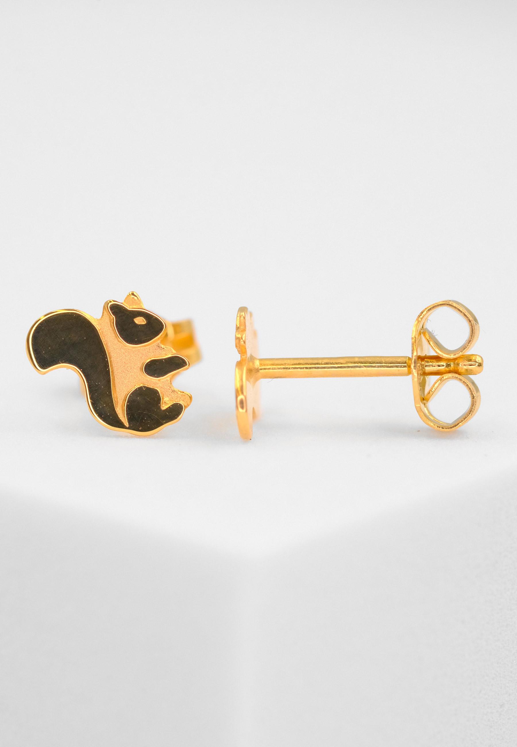 MUAU Schmuck Ohrstecker Eichhorn Gelbgold 750, 7mm