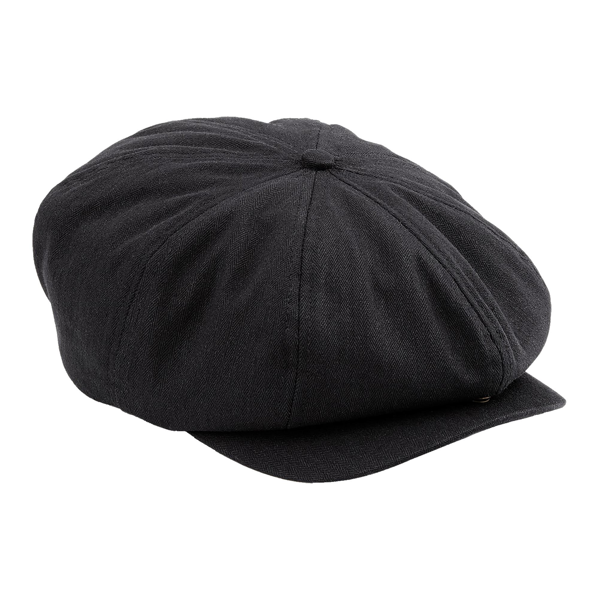 Questo classico berretto newsboy presenta un sottile motivo a spina di pesce, offrendo un accessorio elegante per vari outfit. La visiera è dotata di un bottone a pressione e l'interno è trapuntato per un maggiore comfort. L'etichetta è facilmente rimovibile.