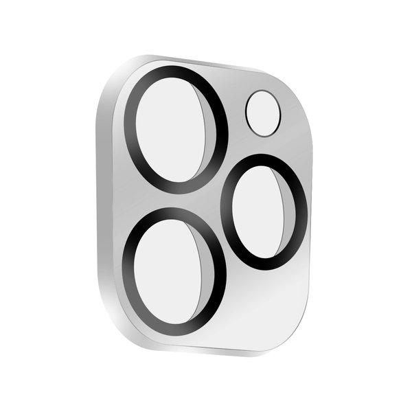 Protezione fotocamera per iPhone 13 Pro, in vetro temperato 9 ore con bordi intorno agli obiettivi neri. Il trattamento anti-esplosione lascia le fotocamere intatte. Rivestimento antimacchie. Trasparenza perfetta: colori e nitidezza delle foto conservati.