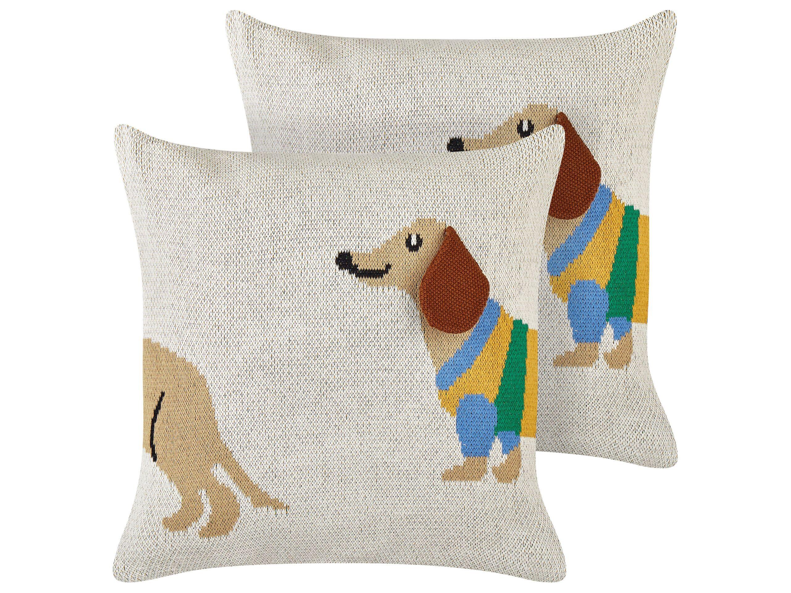 Cuscini decorativi per bambini. Aggiungi un fattore di divertimento all'arredamento della stanza dei tuoi figli con questo fantastico set di due cuscini decorativi. Caratterizzati da un affascinante motivo a bassotto, sono garanzia di allegria per i più piccoli e conferiscono personalità al letto o al divano. Completi di imbottitura in peluche e di fodere in cotone facilmente sfoderabili, questi cuscini offrono comfort e praticità.