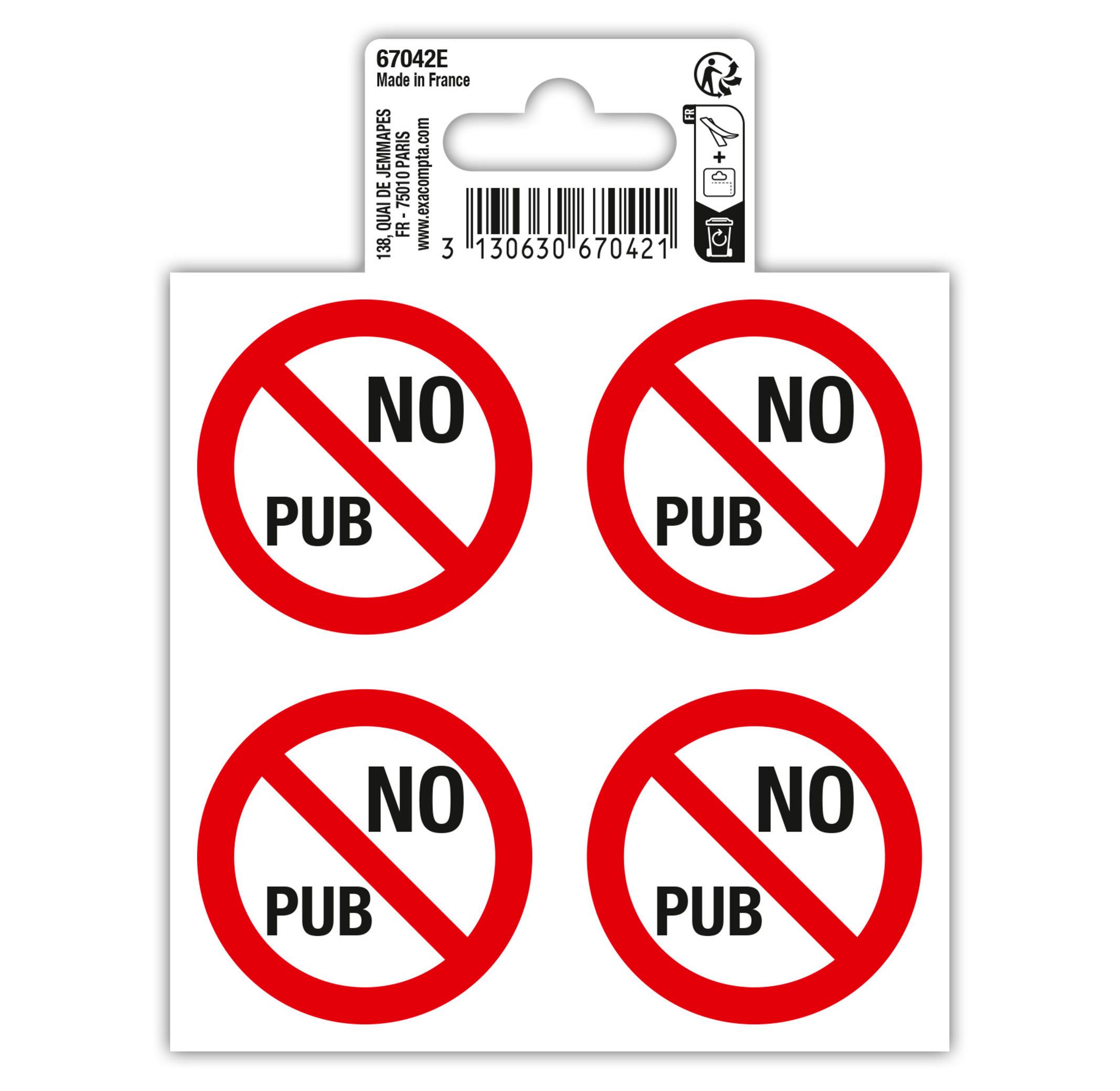 Exacompta, Exacompta, Hinweisschilder selbstklebend, 4x No pub (keine Werbung), 10x10 cm, PVC
