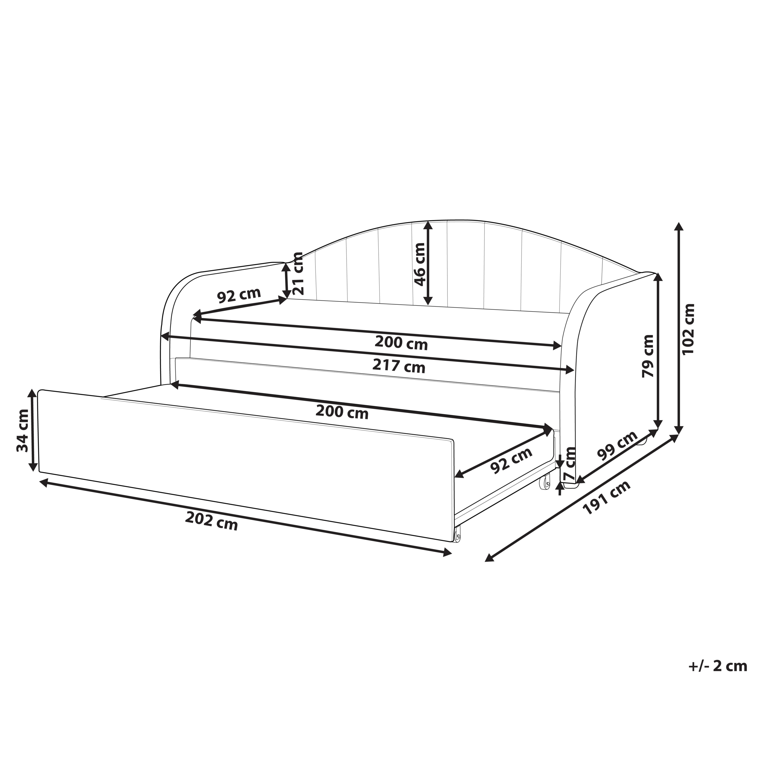 Informazioni aggiuntive: Per chiudere facilmente il cassetto, l'altezza del materasso inferiore non deve superare i 10 cm., Si noti che il tessuto vellutato potrebbe risultare un po differente esposto alla luce; tende ad essere più lucido e brillante con la luce del sole, mentre con la luce artificiale è di un tono diverso, più scuro. A causa della tipologia del tessuto, la tonalità del velluto può variare anche quando lo si tocca con mano in diverse direzione. Per uniformare il colore e sbarazzarsi di ammaccature e pieghe, il materiale dovrebbe essere accarezzato con un palmo aperto in una direzione, strofinato con un panno umido o un ferro da stiro con vapore.