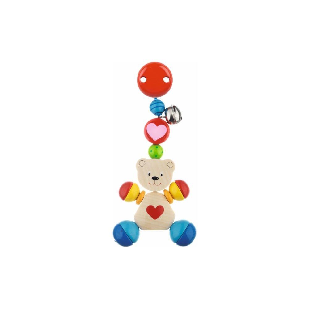 Die liebevoll gestaltete Clipfigur aus Holz mit niedlichem Bärenkopf kann an Babybett, Kinderwagen oder Babyschale befestigt werden. Mit einer Länge von 14 cm ist der Clip perfekt für unterwegs.