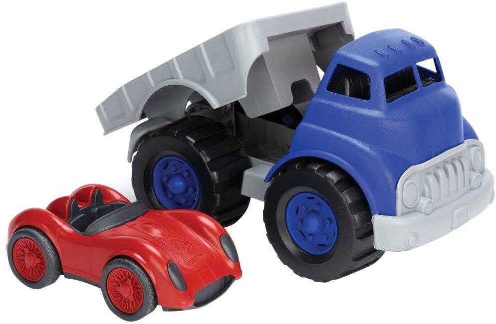 Dieser stabile Tieflader bietet jede Menge Spielspass, sowohl drinnen als auch draussen. Er besteht aus 100% recyceltem Kunststoff und ist frei von BPA, PVC und Phthalaten. Der Transporter enthält einen roten Rennwagen und hat eine kippbare Ladefläche, um das Fahrzeug leicht abzuladen. Ideal für kreative Rollenspiele und Motorikförderung.