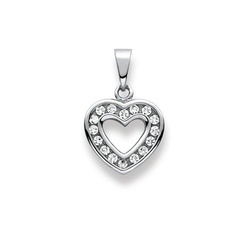 MUAU Schmuck, Anhänger Herz Weissgold 750 Zirkonia, 20x13mm