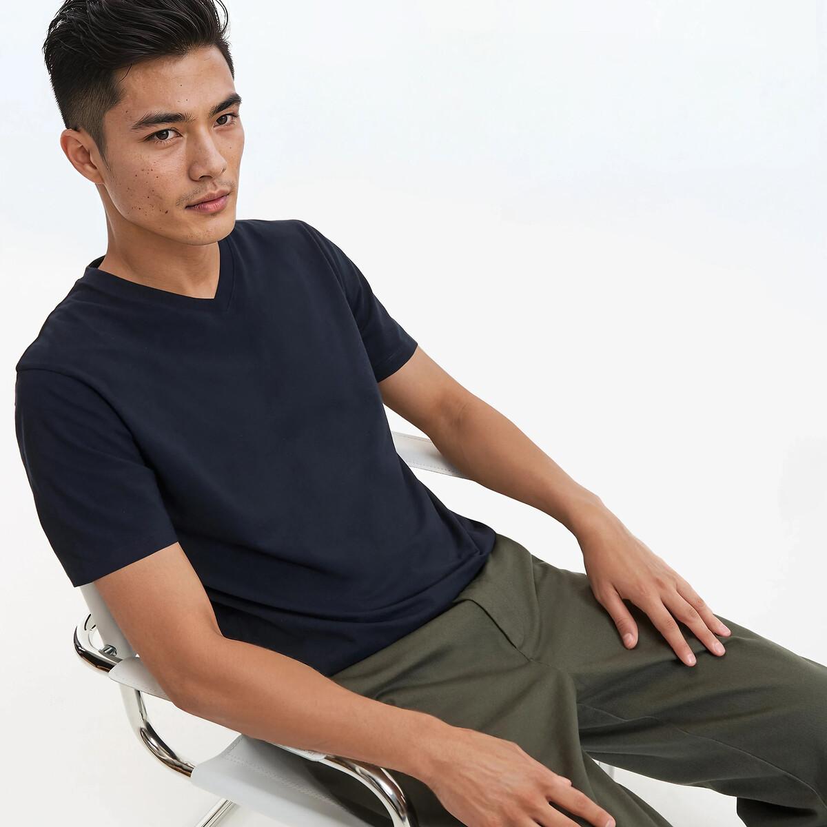 Questa versatile T-shirt è un capo essenziale del guardaroba, offrendo una vestibilità comoda e un classico design con scollo a V. Le sue maniche corte la rendono adatta a varie occasioni, fornendo un look intramontabile e adattabile.