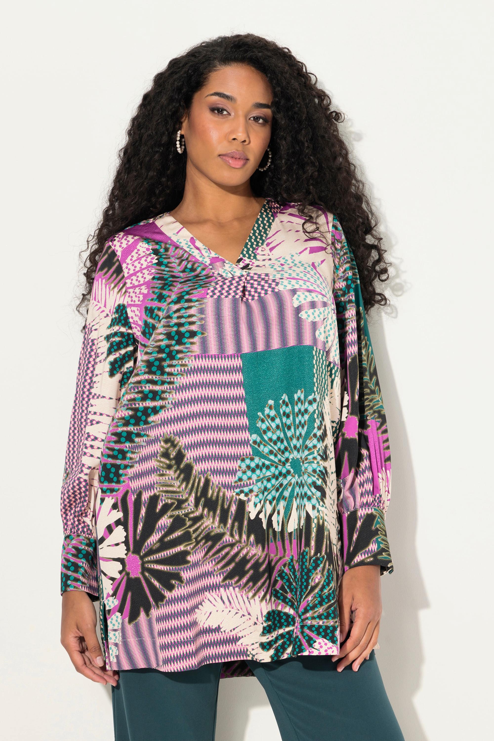 Ulla Popken Maglia Fiori Taglio svasato Scollo a V Maniche lunghe