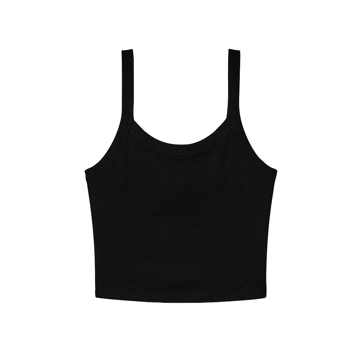 Questo top senza maniche presenta delicate spalline sottili, offrendo un'opzione versatile e confortevole per vari outfit. Il suo design semplice lo rende un capo fondamentale per la stratificazione o da indossare da solo.