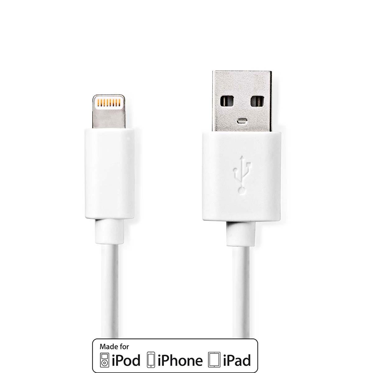 Nedis, Cavo Lightning | USB 2.0 | Apple Lightning, 8-pin | USB-A Maschio | 480 Mbps | Nichelato | 3,00 m | Rotondo | PVC | Bianco | Scatola