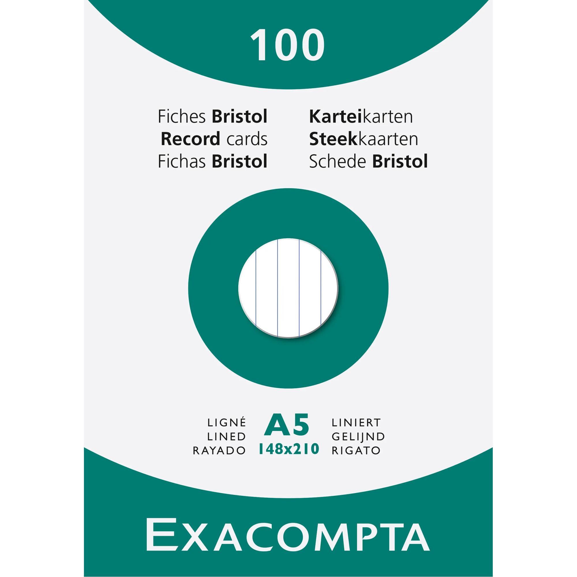 Exacompta Confezione 100 cartoncini bristol bianco a righe non perforati 148x210mm - x 10