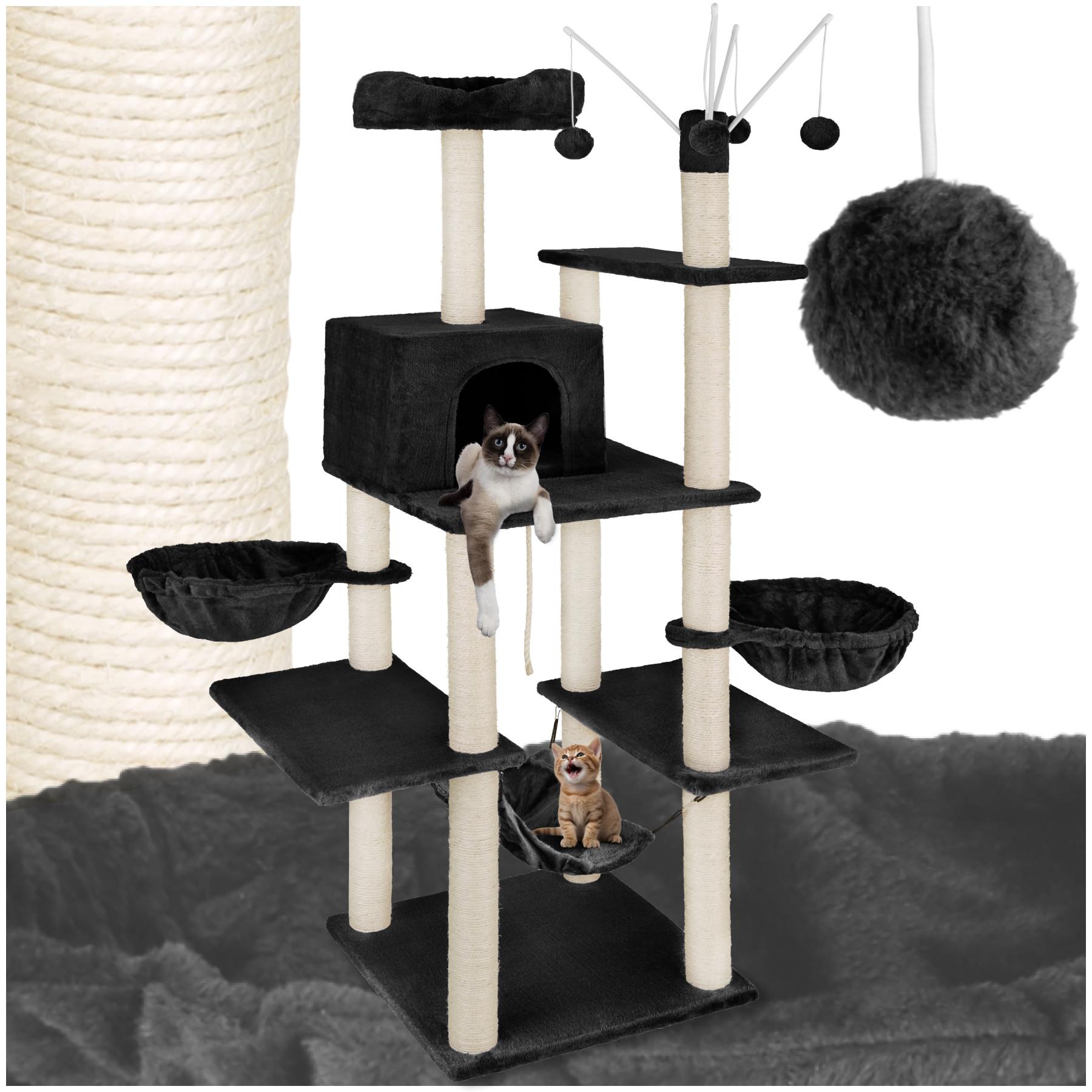 Questo robusto albero tiragraffi con il suo morbido rivestimento in peluche di tectake è un vero paradiso per tutti i micetti. Siccome il tiragraffi si compone di più piani, è il luogo perfetto per i gatti che adorano arrampicare. E anche le corde robuste offrono tante possibilità per giocare. L'amaca, le cucce e la casetta invitano invece ai gatti a riposarsi, accoccolarsi ed a ritirarsi in tranquillità. Dalla piattaforma panoramica in sommità il tuo gatto tiene d'occhio tutto ciò che accade. Sulle colonne provviste di fine e resistente sisal è possibile affilarsi meravigliosamente gli artigli. Grazie ai diversi ripiani questo tiragraffi gratta unghie può essere utilizzato da più gatti contemporaneamente. Così, questo albero tiragraffi multifunzionale garantisce un grande divertimento che non diventa mai monotono.