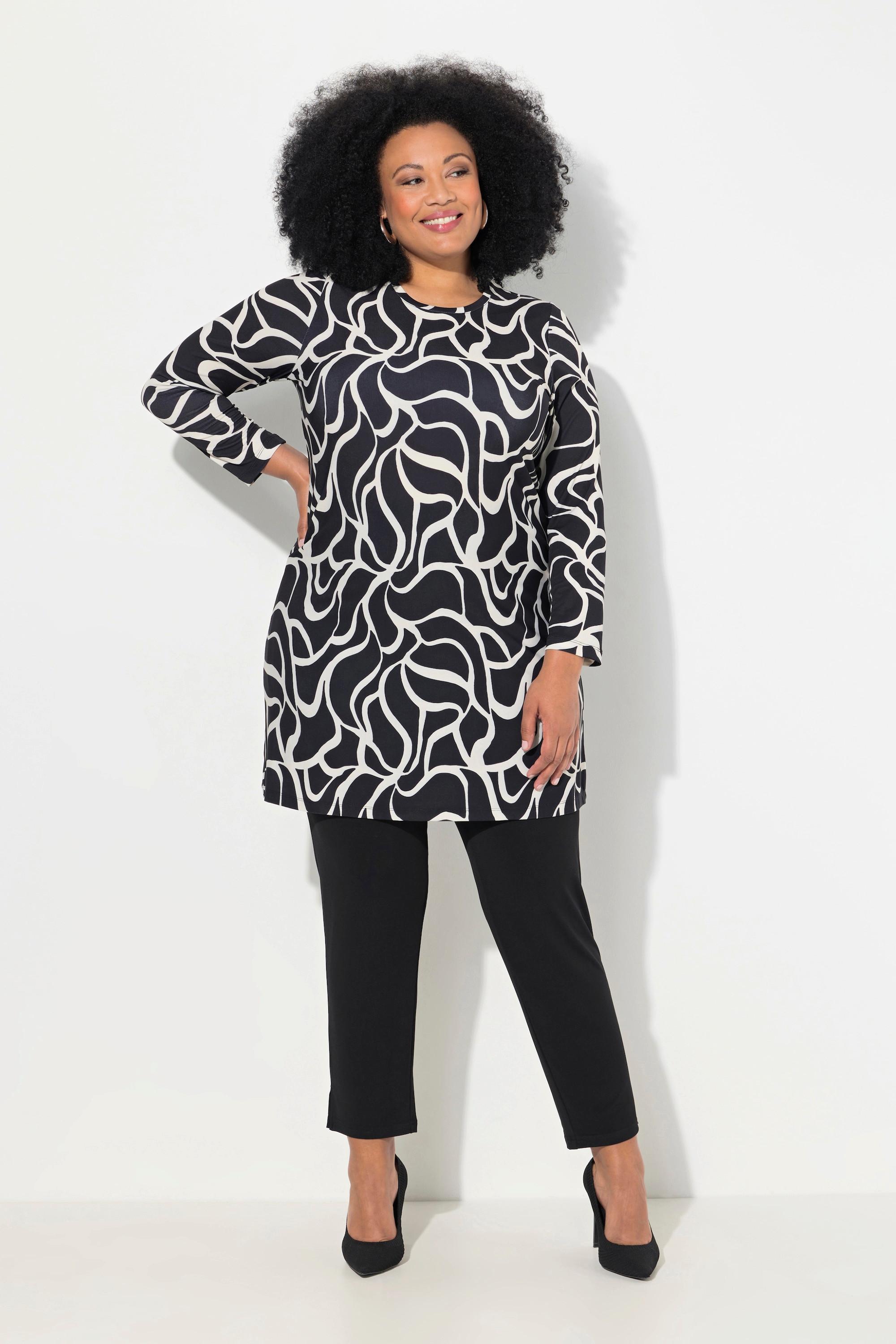 Ulla Popken Maglia lunga stampata taglio svasato scollo a girocollo maniche lunghe