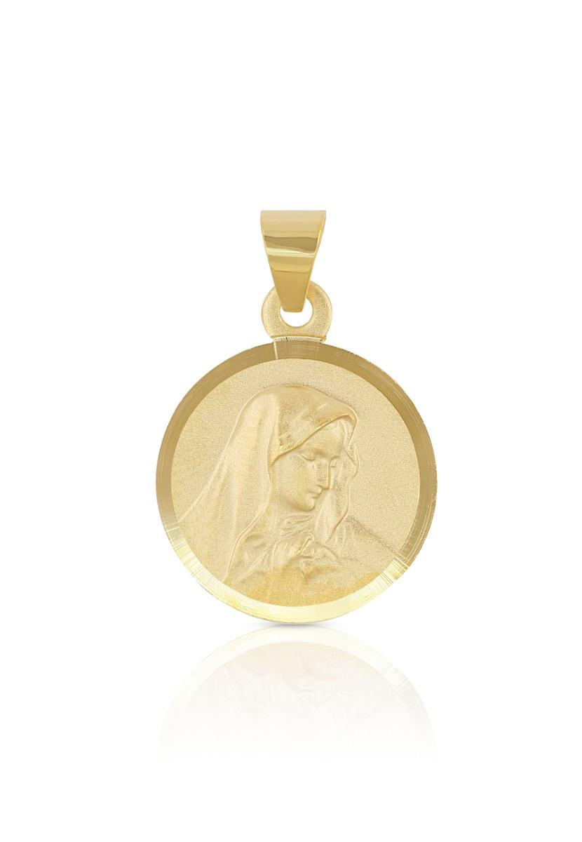 MUAU Schmuck Anhänger Medaille Dolorosa Gelbgold 750, 12mm, 19x13mm