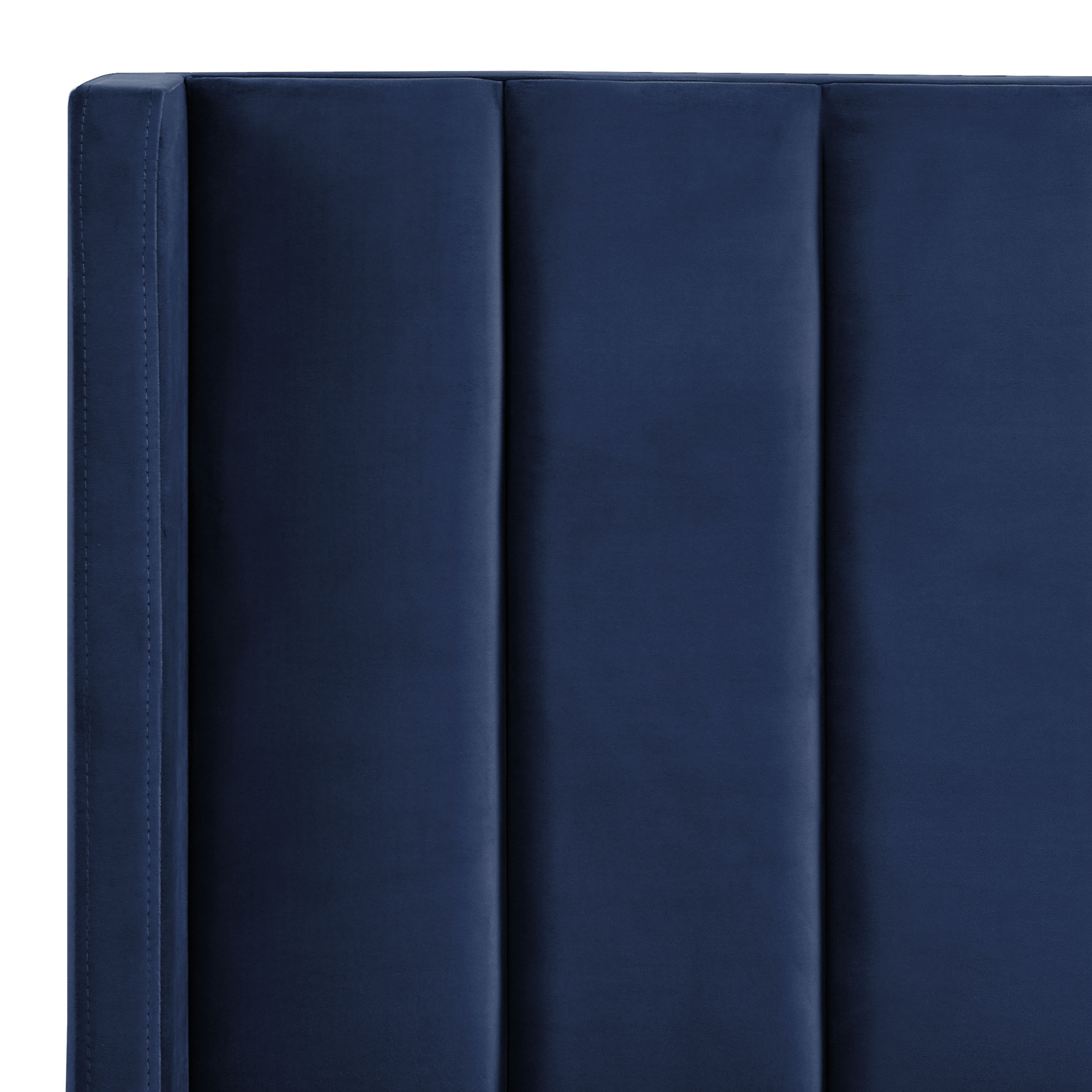 Elegante letto matrimoniale in velluto. Porta l'eleganza in camera da letto con questo letto con rete a doghe dal design contemporaneo. Realizzato in velluto di altissima qualità, presenta una testiera moderna con linee verticali. I solidi piedi, di dimensioni ridotte, poi, offrono una robustezza e una stabilità senza pari.