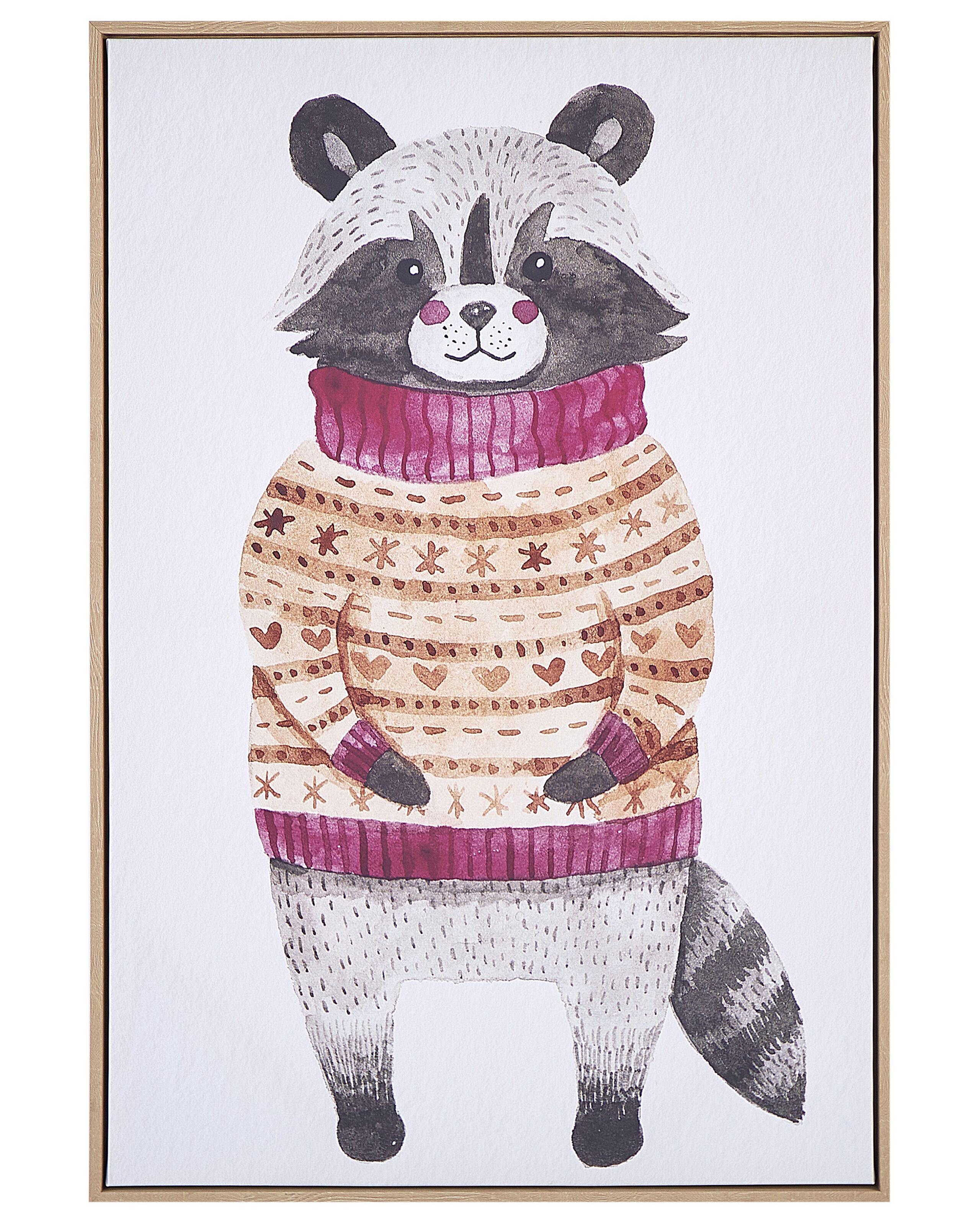 Stampa da parete con ritratto di donna. Dai un'atmosfera allegra e stravagante alla camera dei tuoi bambini con questa incantevole opera d'arte da parete. L'opera dona calore e giocosità a qualsiasi spazio grazie ai suoi colori tenui e al motivo che raffigura un procione, vestito con un accogliente maglione. Stampato su tela di alta qualità e incorniciato in un elegante telaio in MDF, risveglierà la creatività e l'immaginazione del tuo piccolo.