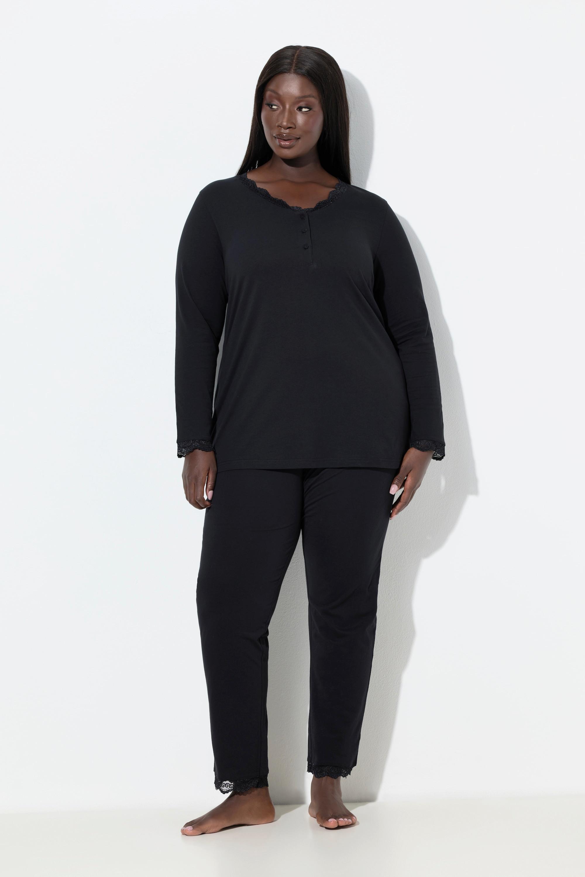Ulla Popken Pigiama Pizzo Bottoni Scollo a V Maniche Lunghe