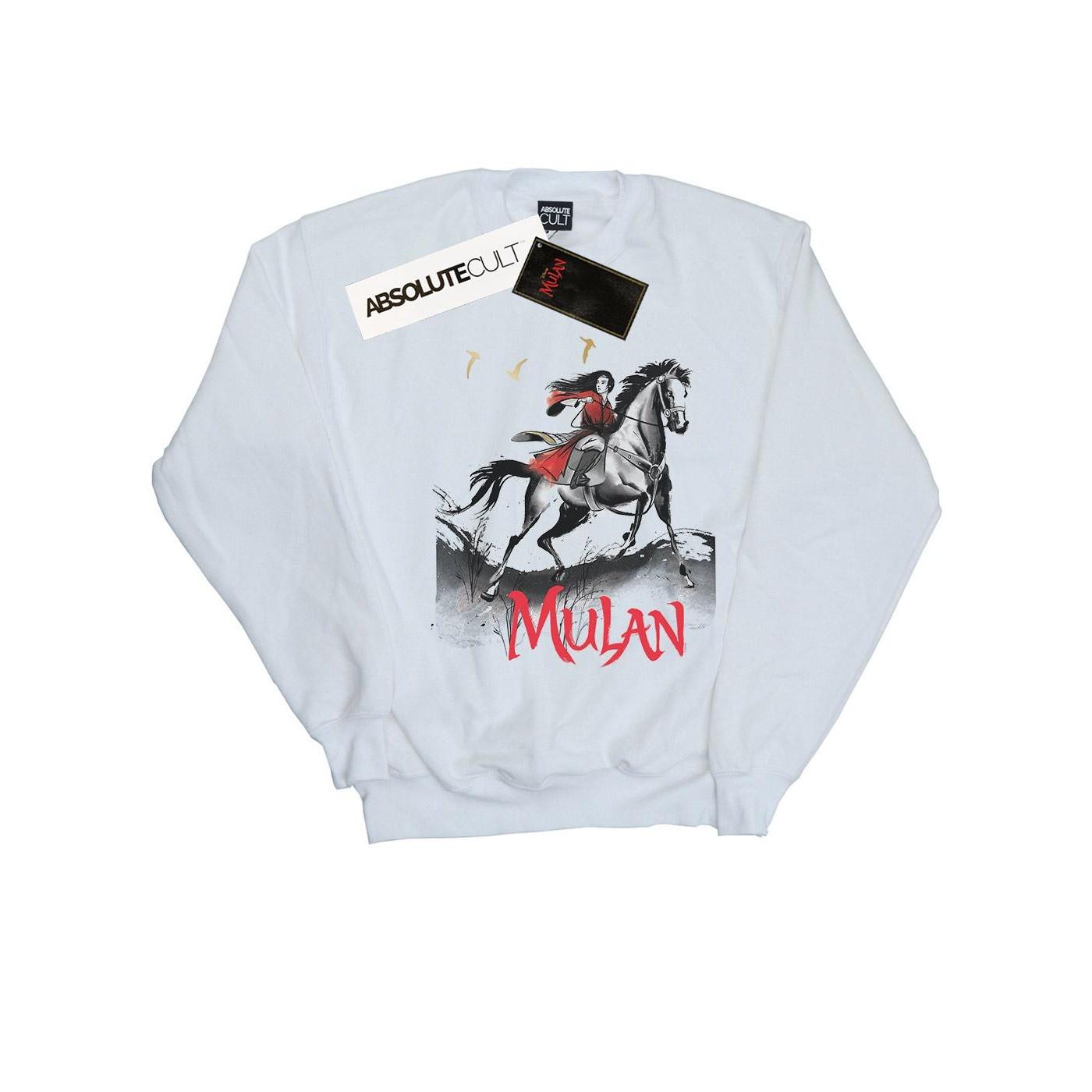 Questa felpa presenta un classico girocollo, maniche lunghe e una vestibilità comoda, rendendola un'aggiunta versatile a qualsiasi guardaroba. Il design mostra una grafica dinamica di Mulan della Disney a cavallo, catturando un momento di forza e avventura.