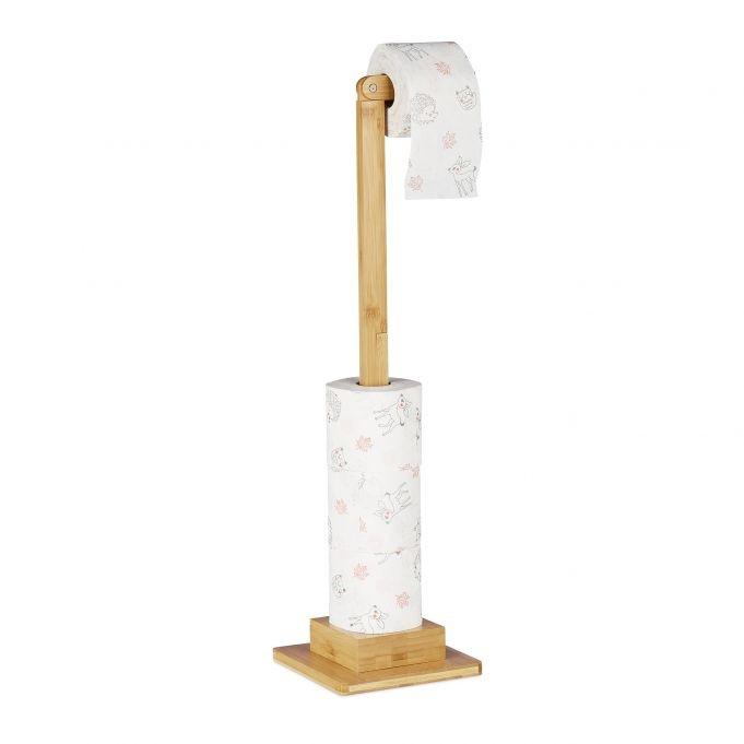 Rinnova il tuo bagno con un portarotolo in bambù che offre eleganza e praticità. Questo portarotolo indipendente combina un dispenser per rotoli di carta igienica con un vano portarotolo di scorta, mantenendo a portata di mano fino a 6 rotoli.